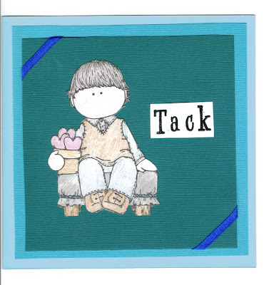 Så har jag äntligen fått i väg tack korten från Vilmers dop! Gjorde tre olika designer med samma stämpel; hjärtepojke på pall från hÄnglar o stÄnglar. Min personliga favorit är det gröna. I det vita kortet har jag fäst sidenbandet på insidan av kortet. Har experimenterat lite med olika sorters lim och gluespots för att hitta något som funkar bra när man monterar, men har bara kunnat konstatera att det är olika var gång...